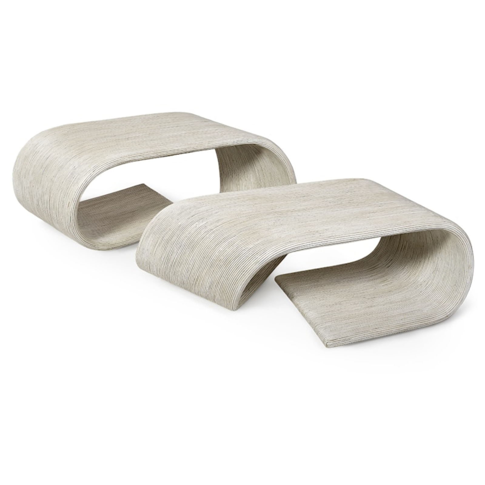 Core rattan in a whitewash finish hand-bent and laminated over a powder-coated metal frame in a unique scrolled design. Texture, size, and color may slightly vary. Coordinates with the Allegro white collection..